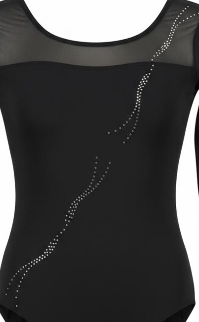 - Sleeveless leotard- Button-up turtleneck- Beautiful open arched back- Combination of mesh and microfiber