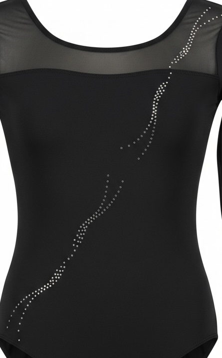 - Leotard with short mesh sleeves- Subtle curve on the back- Combination of mesh and microfiber