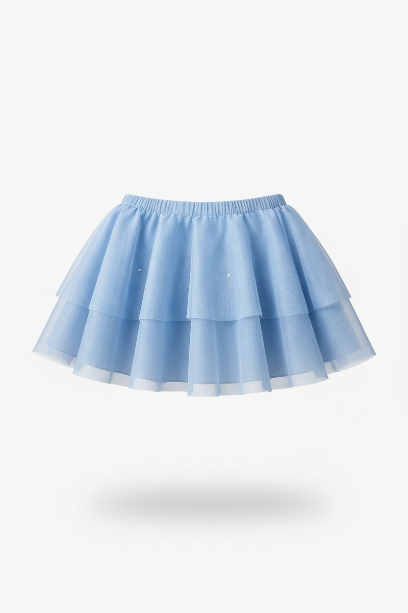 Beautiful two-layer skirt made of mesh, with crystals
